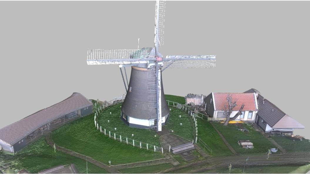 针对这一难题,一位荷兰修复专家联系了4C Creative CAD CAM Consultants(简称4C)寻求解决方案,希望能以1:1比例还原风车内外结构,为后续修复做准备。最终确定的方案是:采用LiDAR Artec Ray II扫描风车外部结构,同时配合Ray II和无线Artec Leo捕获风车内部数据,再将无人机航拍影像导入Artec Studio,利用其中的AI摄影测量算法完成屋顶建模。