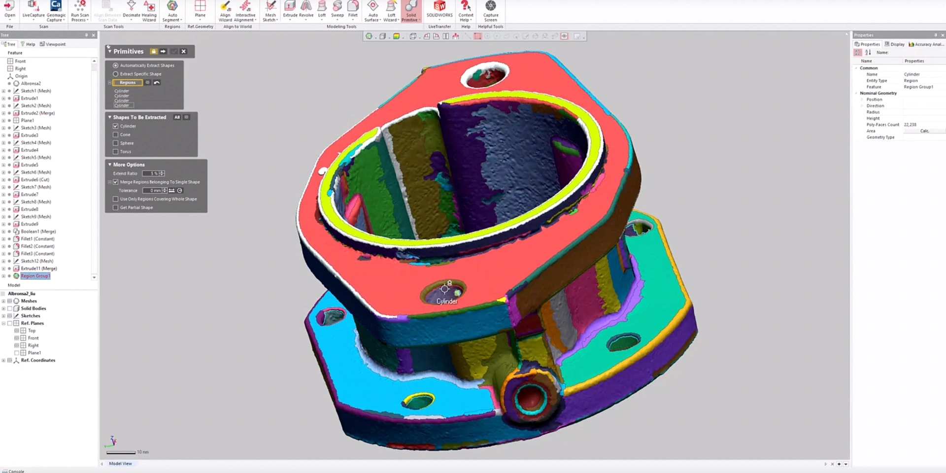 Geomagic Design X 行业领先的逆向工程软件——现面向所有人开放。轻松将3D扫描数据转换为基于特征的可编辑3D模型,满足各类预算需求。 通过3D扫描捕获数据 整理数据 搭建实体CAD模型 分析、迭代、制造 采用行业标准的扫描至CAD解决方案 快速建模向导 点击数下即可提取复杂几何,创建草图,精确调整特征的位置和方向,并找到复杂度和拟合精度之间的平衡点。 无缝集成 通过LiveTransfer(实时传输)高级工具,轻松将3D扫描融入CAD工作流程,确保参数化模型及其完整设计历史无损传输。 实时分析 使用直观易用的准确度分析工具,实时对比CAD实体、曲面或草图与扫描数据,识别偏差,确保合规。 一体化解决方案,助力高效结果 结合Artec 3D扫描与Geomagic Design X,快速准确完成逆向工程,助力重新设计、制造等多样化需求。 3-10倍 更快的CAD建模速度 扫描原型、现有零件或工具,数字化产品设计,迭代时间仅为传统物理测量或从零开始创建CAD模型的十分之一 高达75% 成本节约 使用3D扫描仪捕获实际零部件几何形状,修正设计问题,消除偏差,减少高成本生产错误与工具迭代成本。 0.005毫米 最大精度(无需标记点) 利用Artec 3D扫描和Geomagic Design X,轻松重建复杂几何,并设计出能无缝匹配现有装配的零件。